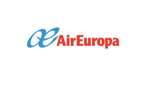 OE AIREUROPA 淺藍(lán)與紅(hóng)色的(de)LOGO設計(jì)